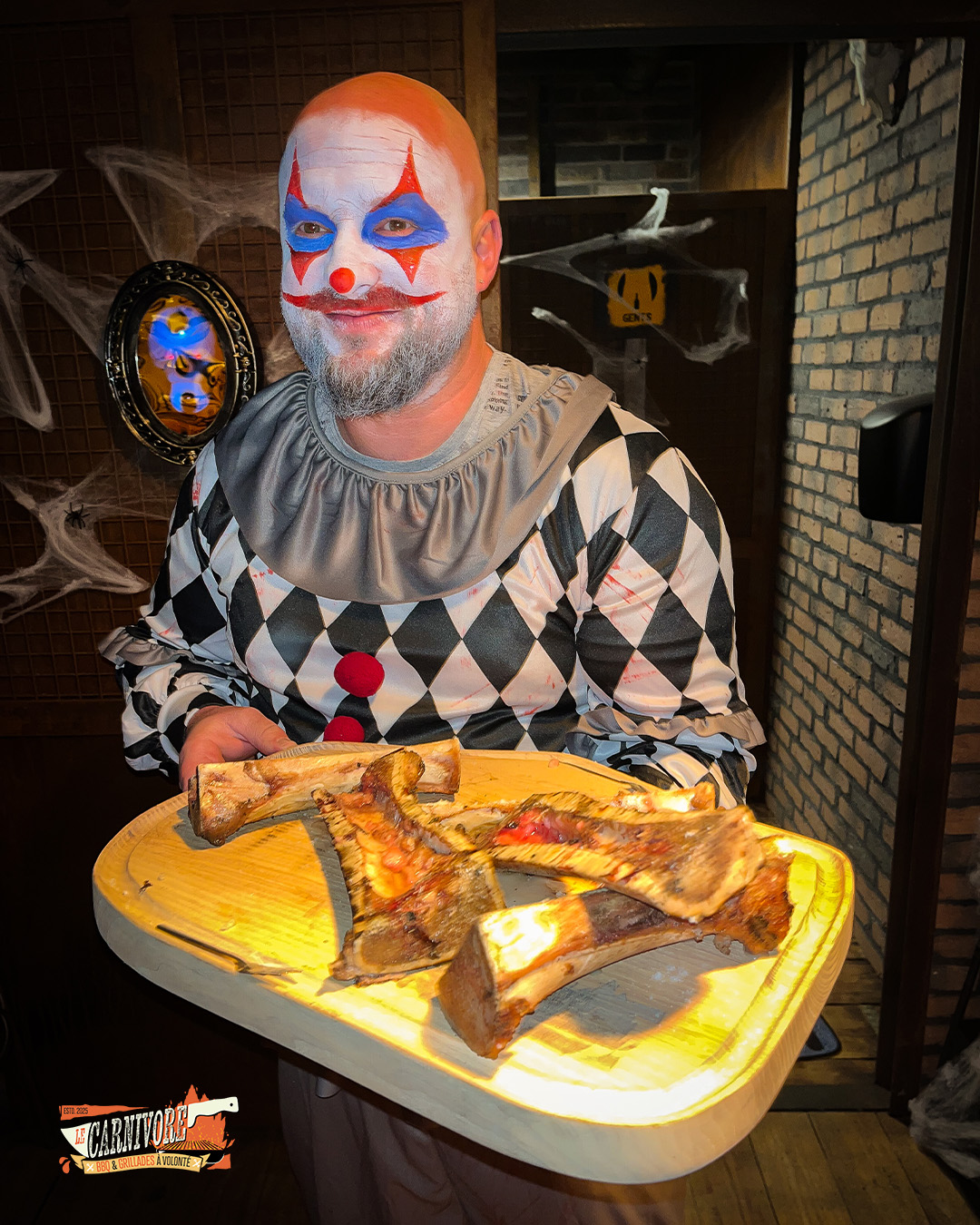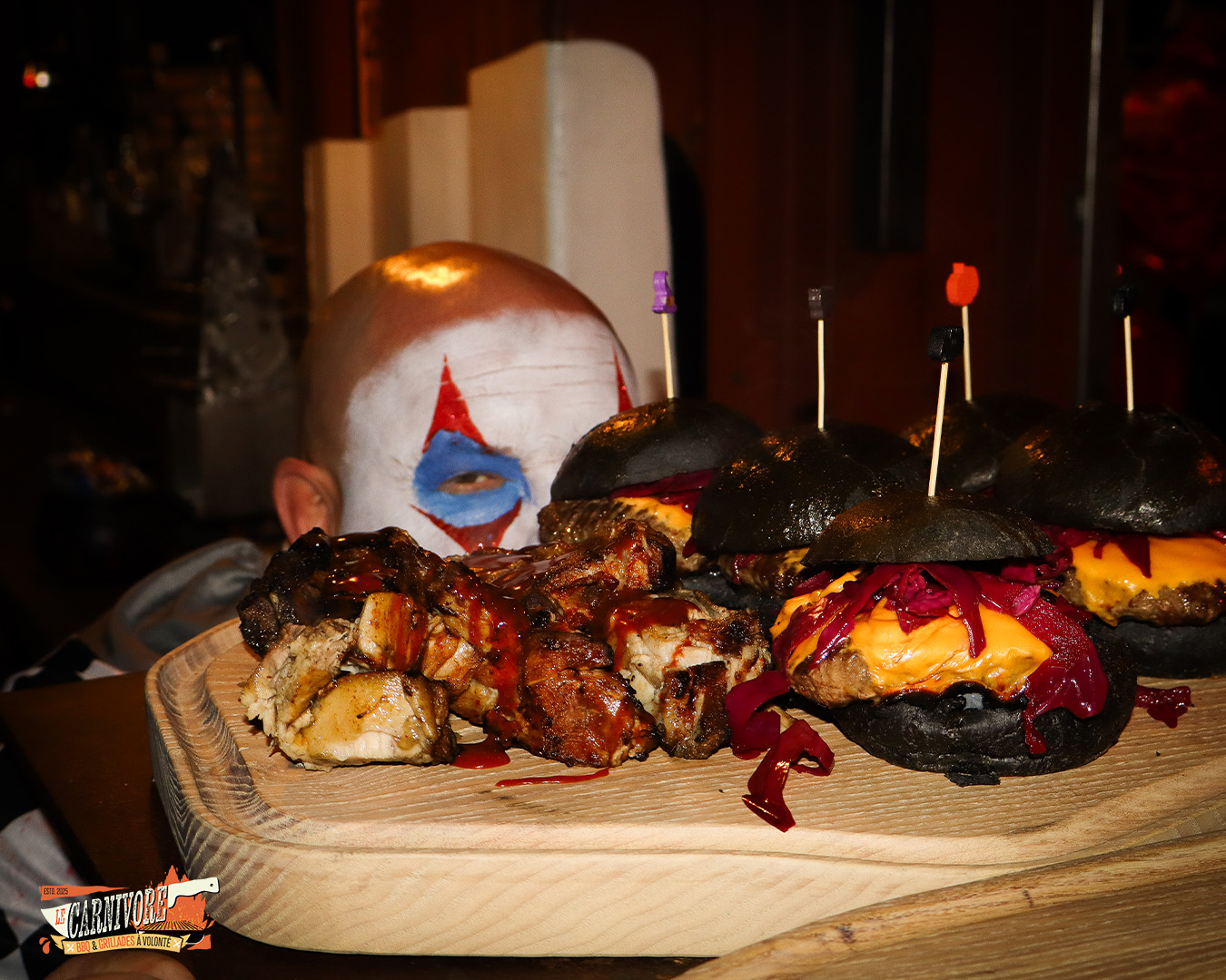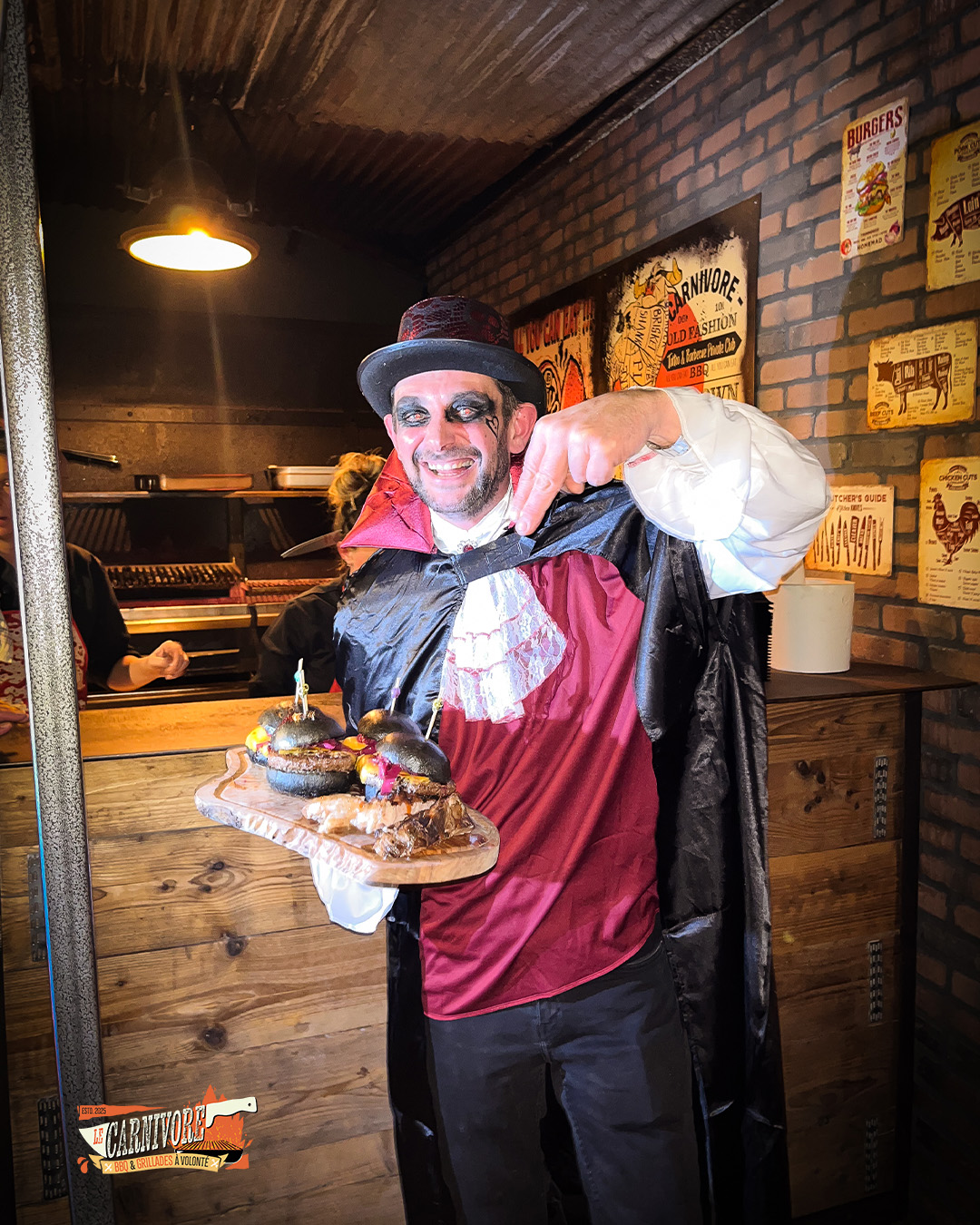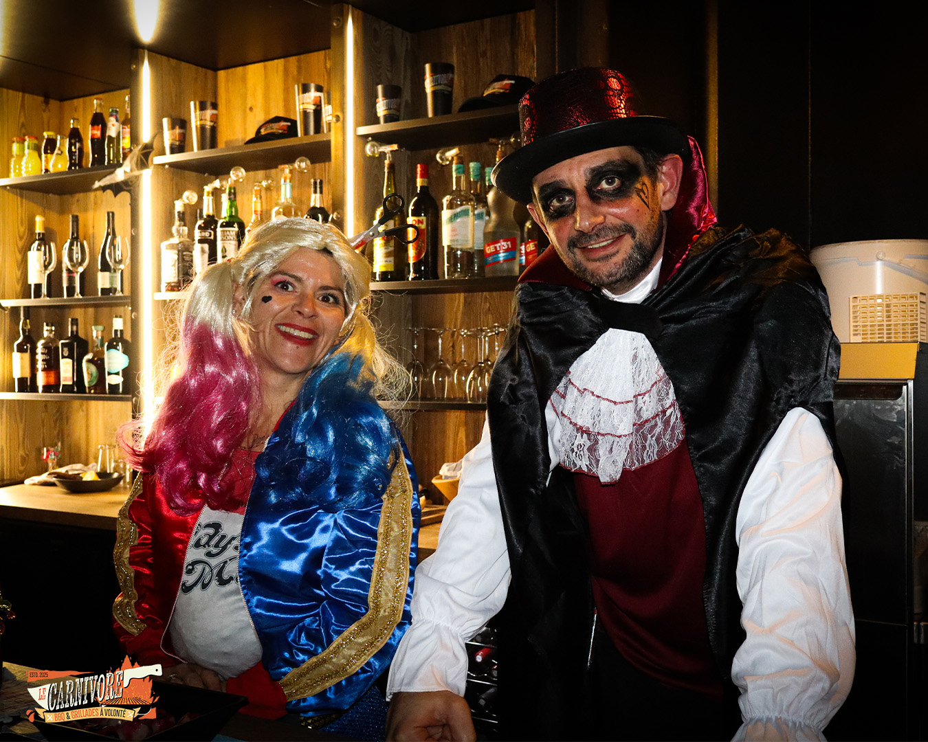 C’est une soirée spéciale Halloween au Carnivore, où la braise rougeoyante rivalise avec les flammes des citrouilles sculptées. Entre les côtes de bœuf fumantes et les effluves de barbecue, une étrange légende circule : on dit qu’un mystérieux « maître du grill » rôde chaque année pour vérifier la cuisson… des âmes égarées. Le jeudi 30 octobre 2025, vous nous avez livré une soirée carnivore sanglante, où la viande était saignante à souhait et les frissons garantis ! Retrouvez les souvenirs de ce moment exceptionnel ci-dessous.