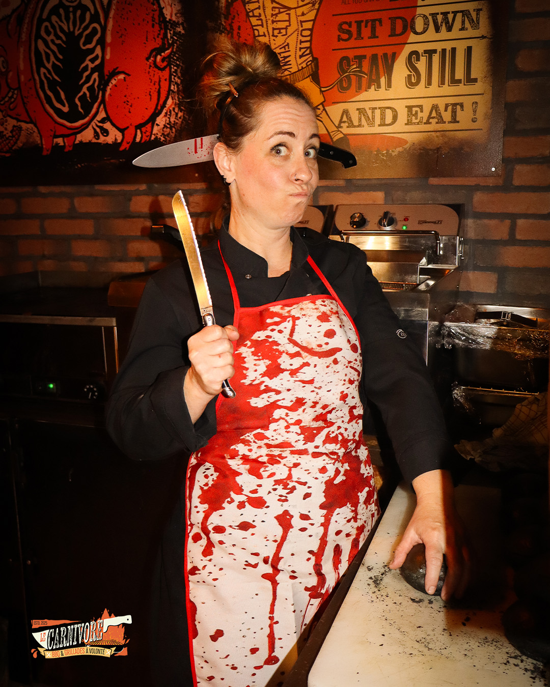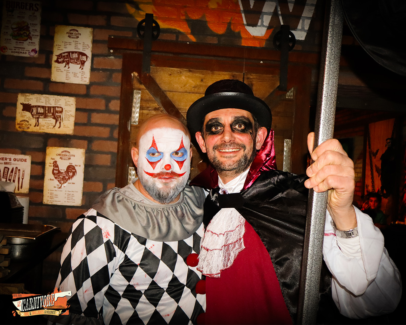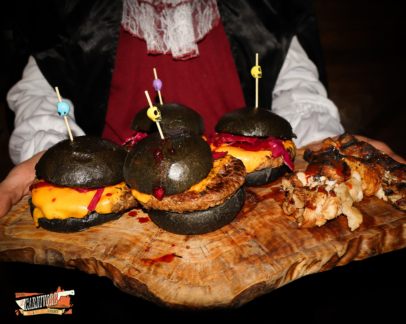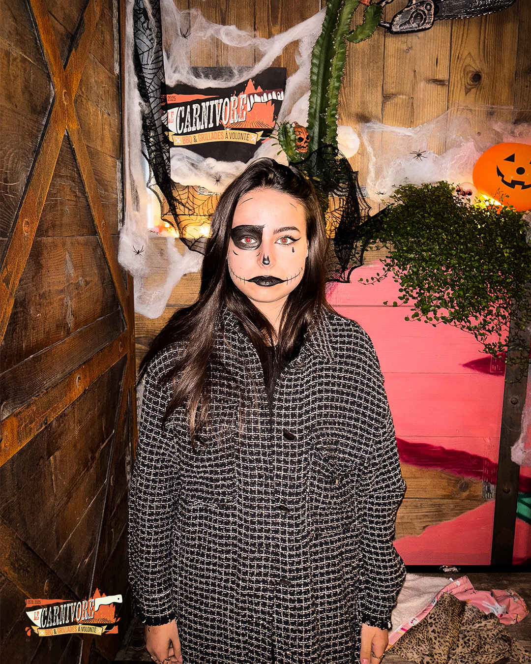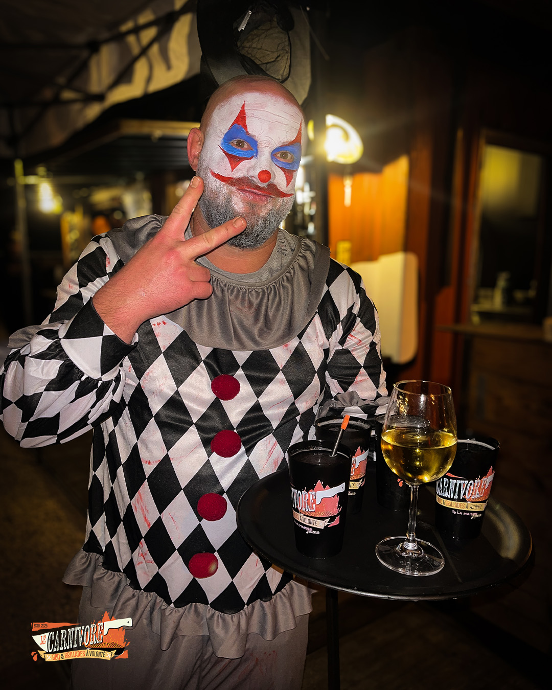 C’est une soirée spéciale Halloween au Carnivore, où la braise rougeoyante rivalise avec les flammes des citrouilles sculptées. Entre les côtes de bœuf fumantes et les effluves de barbecue, une étrange légende circule : on dit qu’un mystérieux « maître du grill » rôde chaque année pour vérifier la cuisson… des âmes égarées. Le jeudi 30 octobre 2025, vous nous avez livré une soirée carnivore sanglante, où la viande était saignante à souhait et les frissons garantis ! Retrouvez les souvenirs de ce moment exceptionnel ci-dessous.