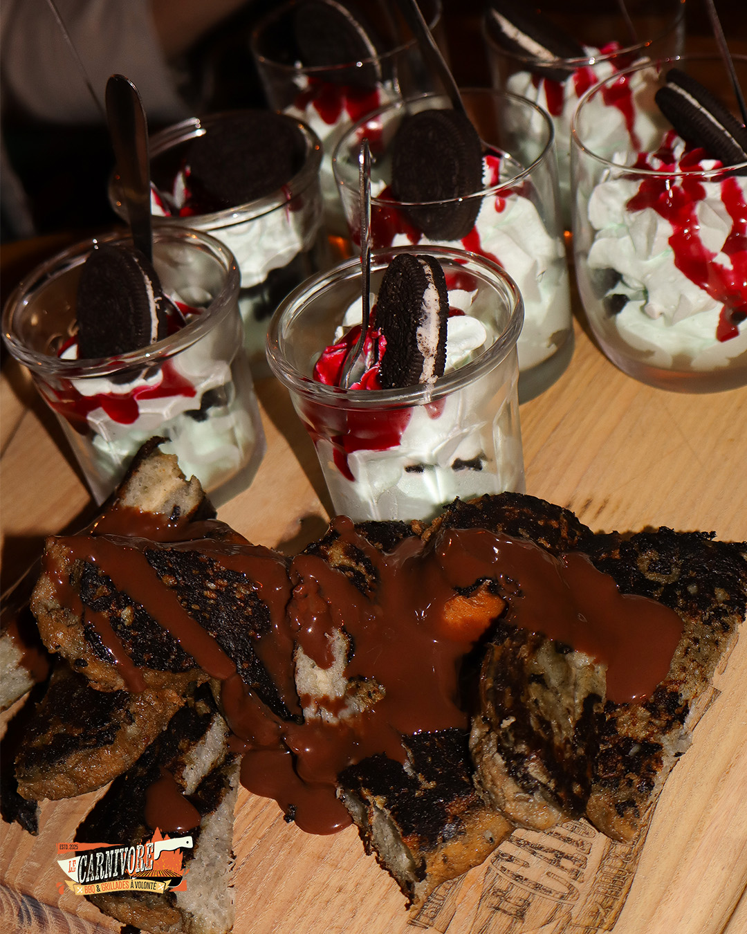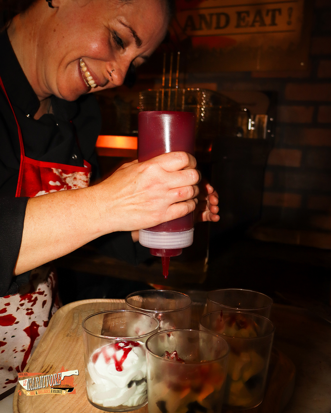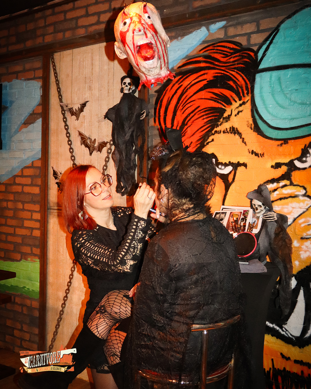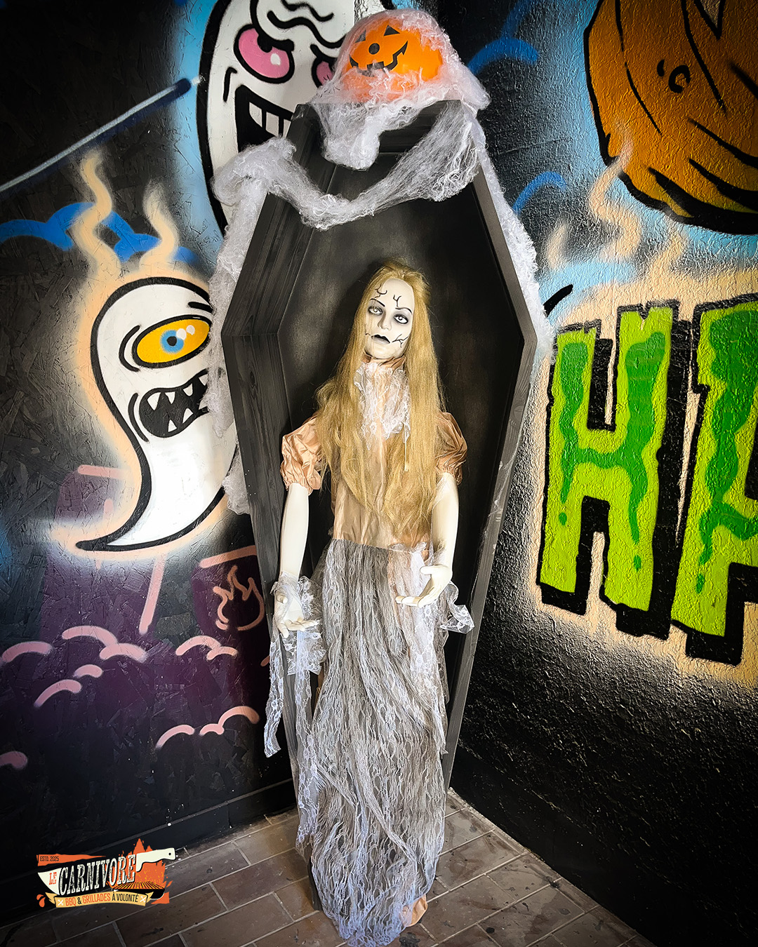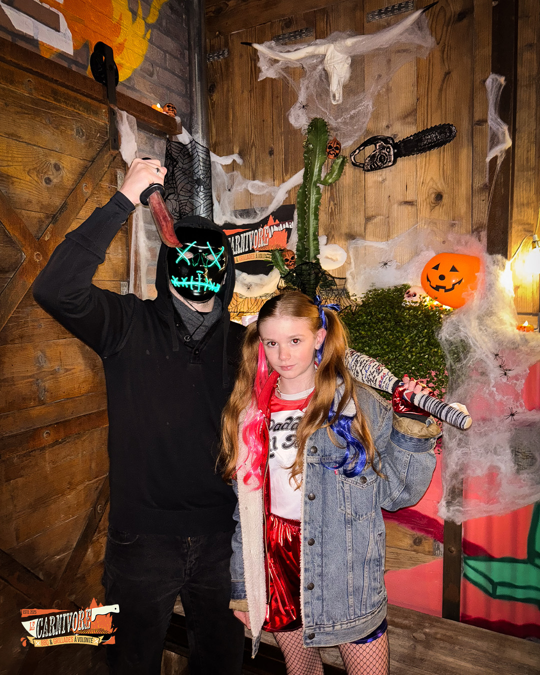 C’est une soirée spéciale Halloween au Carnivore, où la braise rougeoyante rivalise avec les flammes des citrouilles sculptées. Entre les côtes de bœuf fumantes et les effluves de barbecue, une étrange légende circule : on dit qu’un mystérieux « maître du grill » rôde chaque année pour vérifier la cuisson… des âmes égarées. Le jeudi 30 octobre 2025, vous nous avez livré une soirée carnivore sanglante, où la viande était saignante à souhait et les frissons garantis ! Retrouvez les souvenirs de ce moment exceptionnel ci-dessous.